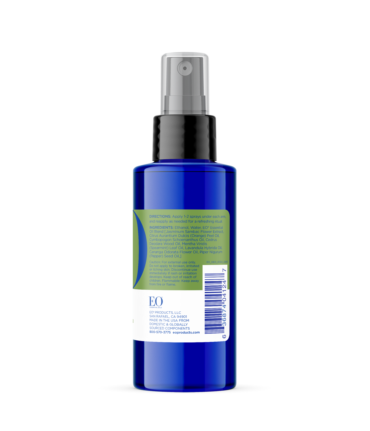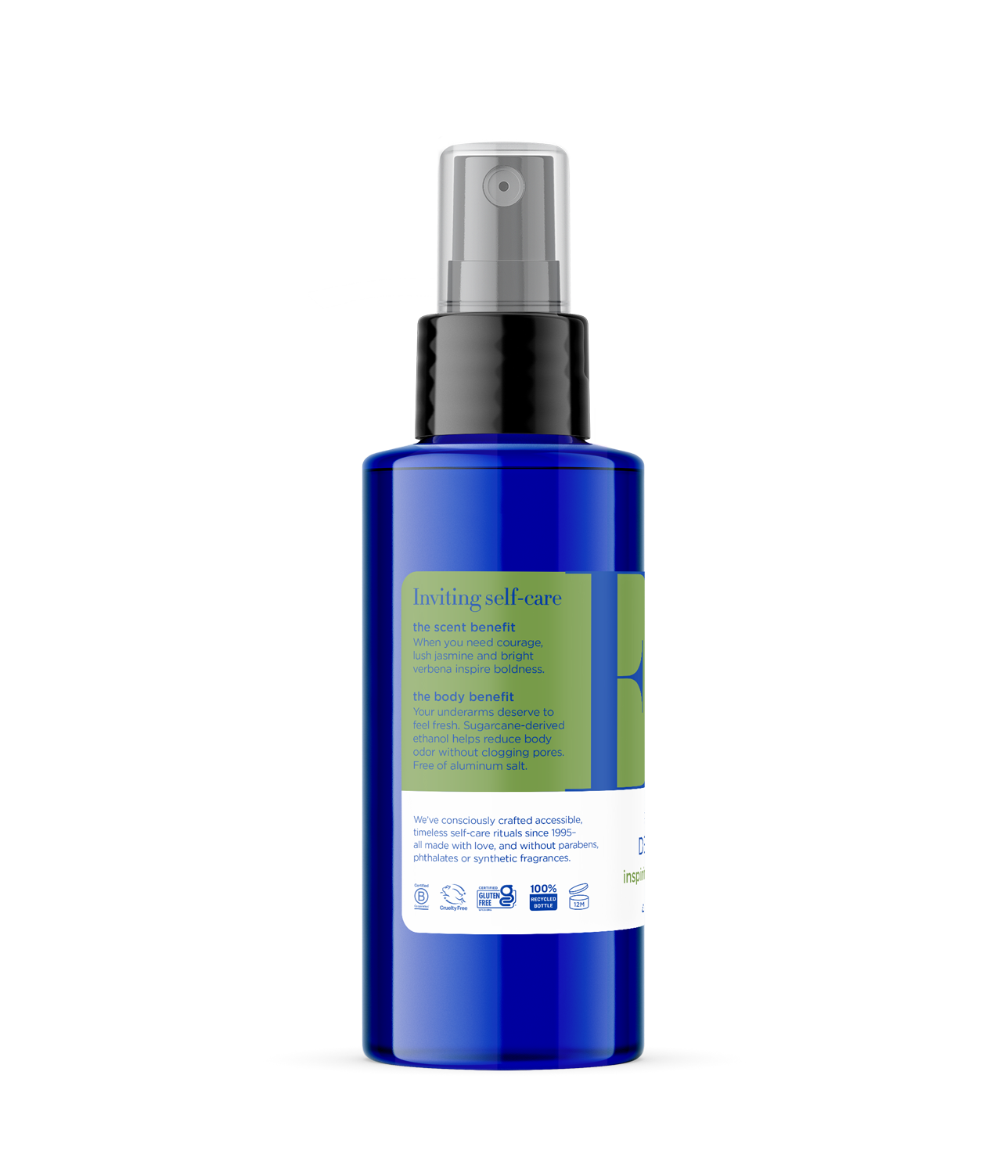 Stay feeling fresh all day with this effective, jasmine verbena deodorant spray. Jasmine, orange, cedarwood, spearmint, lavender and black pepper essential oils invite a moment of aromatherapy every time you apply. Free of aluminum, propylene glycol and synthetic fragrance.