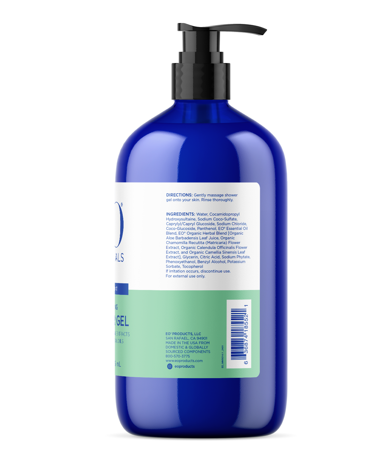 Citrus Mint essential oils give this shower gel it's warming scent. We combine Coconut-derived cleansers and Vitamin E with our signature EO® Herbal Blend of Aloe, Chamomile, Calendula and White tea extracts for clean, happy skin.