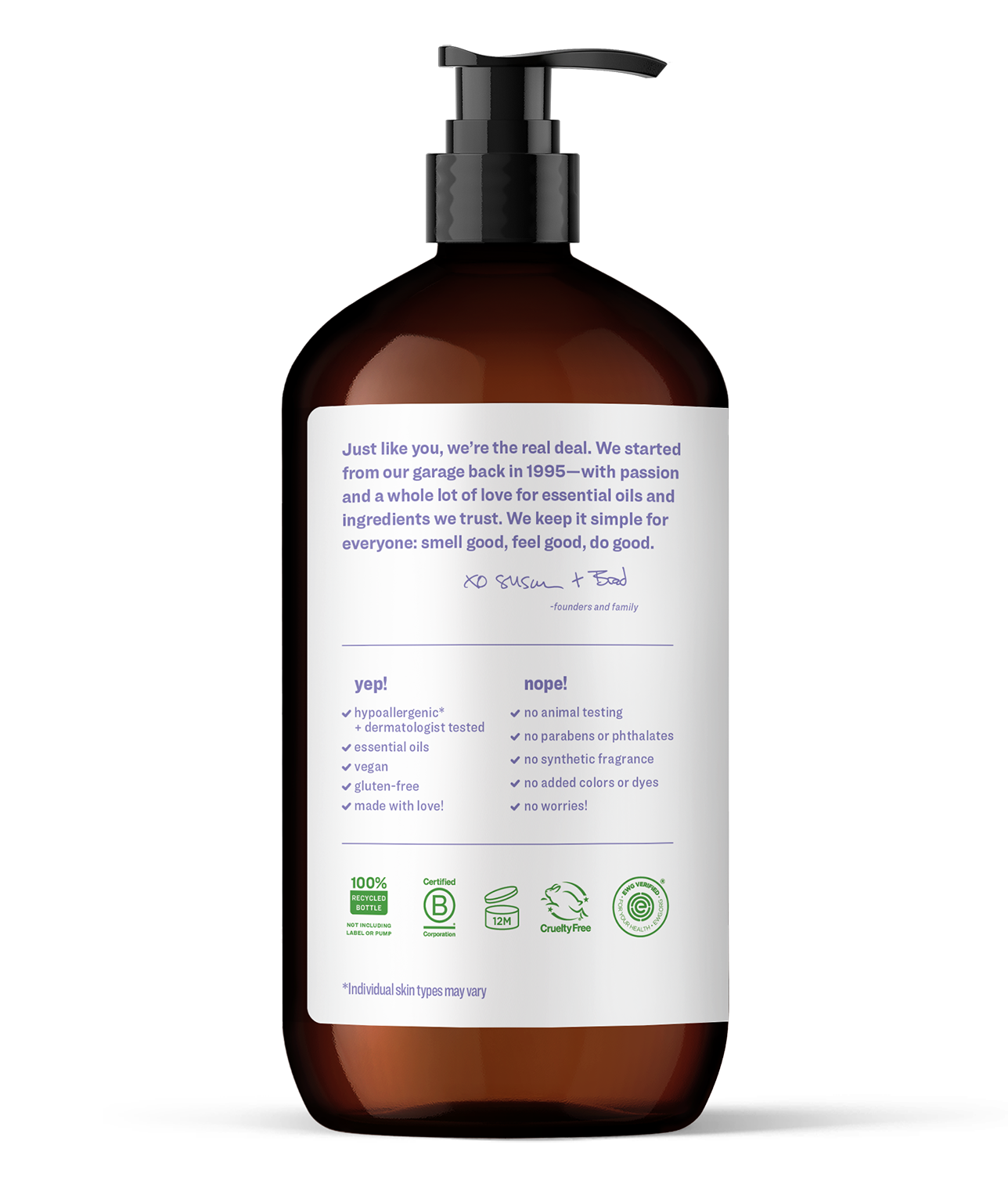 Relax in a classic, calming blend of lavender essential oil and aloe extract.