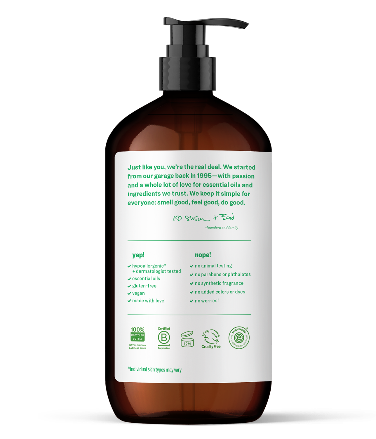 Peppermint and tea tree essential oils leave your skin and senses revitalized.
