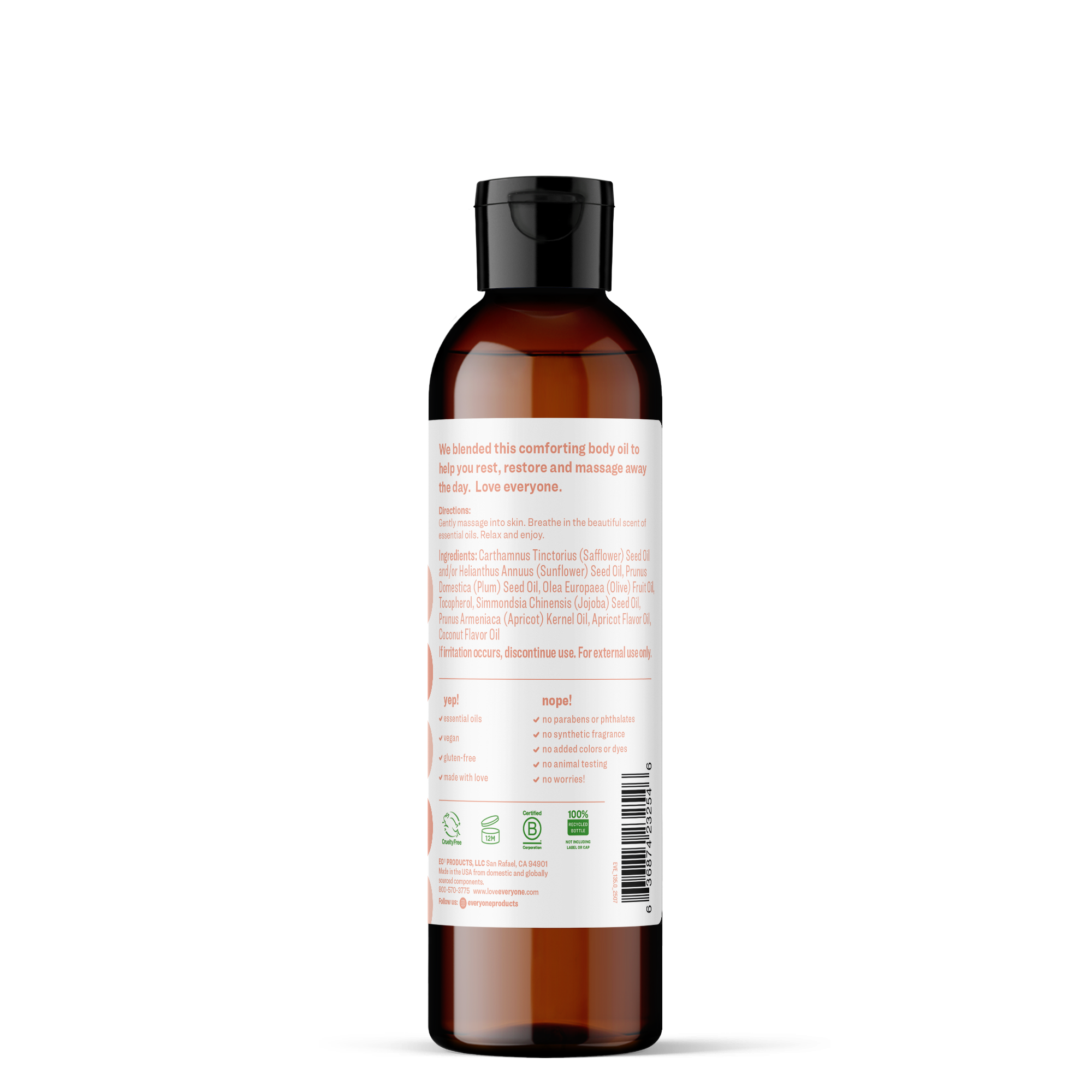 Our answer to the hustle and grind: a soothing body oil for all skin types. Because everyone needs rest and comfort. We blended antioxidant-rich plum oil and safflower oil for a luxurious base oil that absorbs easily into skin. Time for a sweet inhale - ahhh !