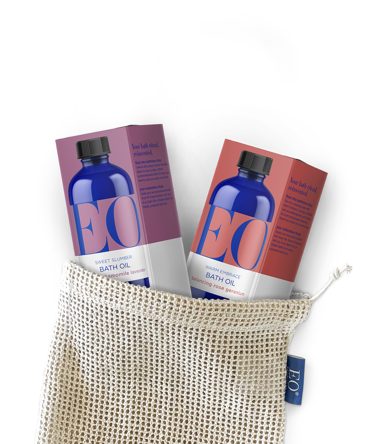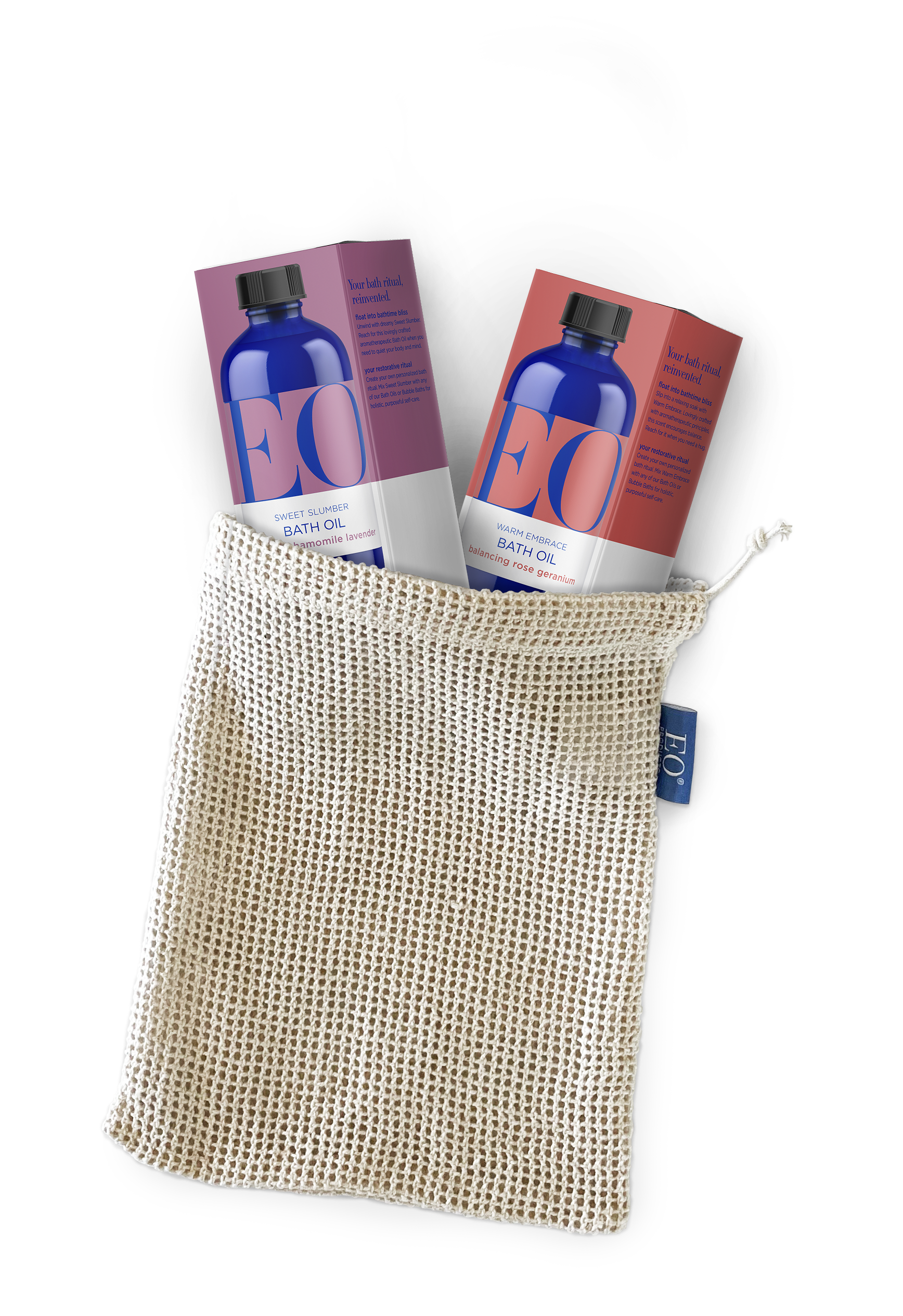EO Bath Bundles make great gifts. Each Bundle is packaged in a cotton mesh reusable gift bag for an easy way to give bathtime bliss.