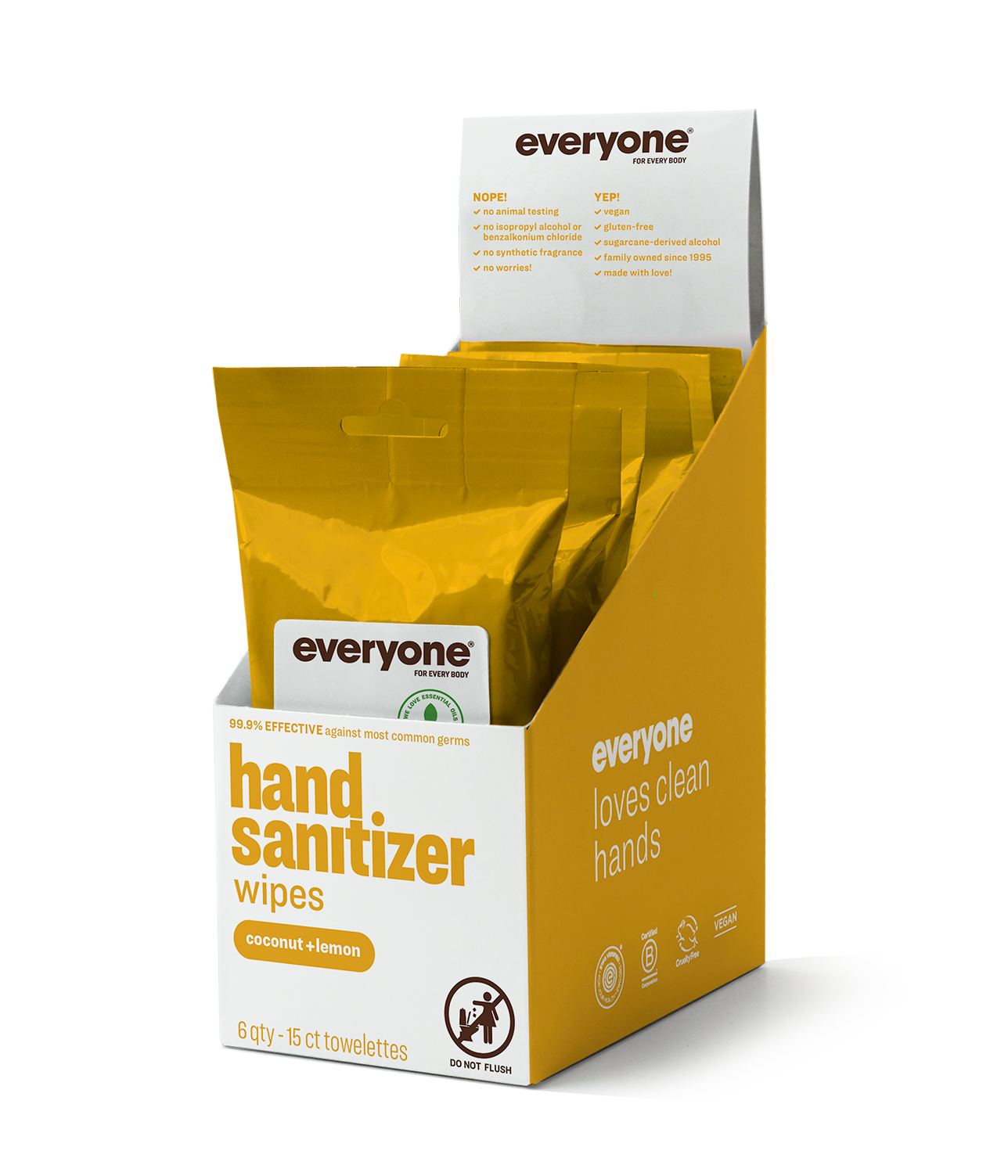 Wipe away worries—anytime, anywhere. Our hand wipes are tough on germs (99.9% effective against most common ones) without drying out your skin. Made without synthetic ingredients like benzalkonium chloride, phthalates, parabens, triclosan, artificial fragrances, or dyes, they leave your hands feeling clean and refreshed.